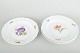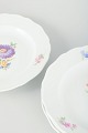 Fire tallerkener i porcelæn, håndmalede med blomsterdekorationer i flerfarvet palet. Klassisk bølget kantprofil med relief og delikat staffering.