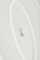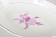 Håndmalet oval skål i porcelæn med dekor i lilla blomsterkompositioner og let bølget kant. Klassisk Meissen-design med elegant staffering i rosa toner.