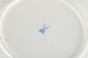 Hånddekoreret porcelæn med håndmalede blå blomsterdekorationer og forgyldte stafferinger langs kanten. Klassisk let bølget form.
