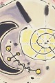 Et abstrakt og kosmisk motiv med organiske, spiralformede bevægelser i røde, gule og blå toner, centreret om et cirkulært felt med sol- og månelignende former. Kompositionen balancerer mellem det poetiske og det symbolske med grafiske rytmer og håndtegnet energi.