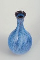 Elegant baluster-shaped vase in glazed stoneware with a slender neck and rounded body. Finished with a vibrant blue glaze featuring subtle vertical movement and a slightly darker rim at the opening. Produced in first factory quality, the vase exemplifies the refined balance between form and surface that characterises Gunnar Nylund’s work for Rörstrand.