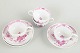 Antikke små kaffekopper i porcelæn med håndmalet dekoration i rosa toner. Klassisk Meissen-udtryk med fine blomster- og båndmotiver.