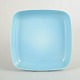 Kvadratisk skål i stentøj med afrundede hjørner og ensartet turkis glasur.