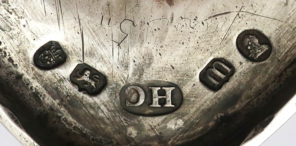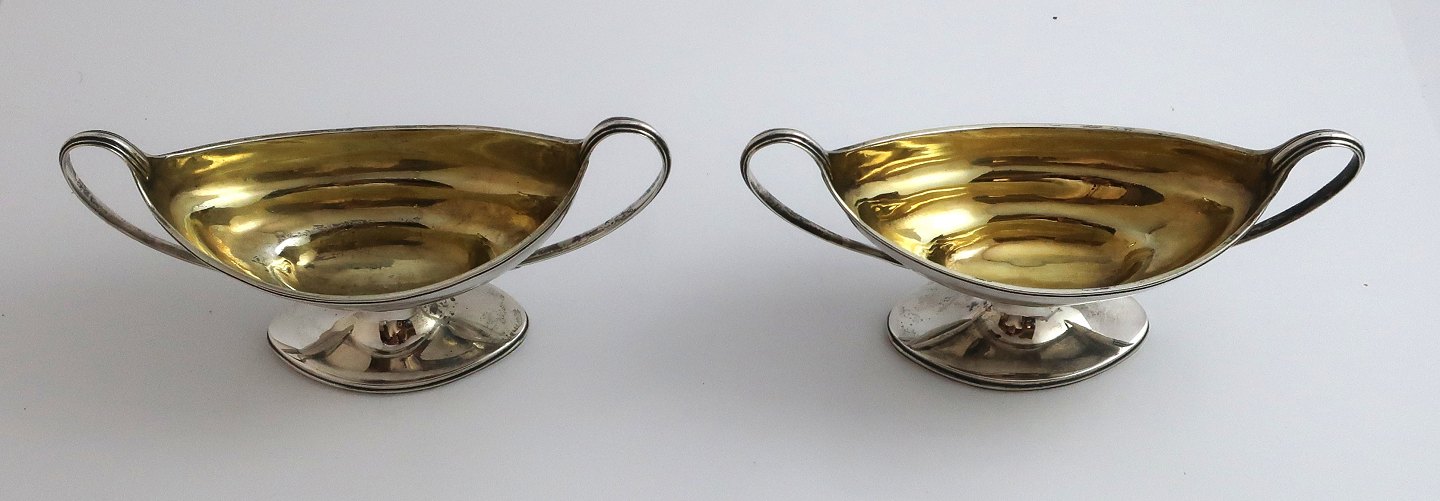 England. Henry Chawner, London (H C). Sterling saltkar / krydderikar. Forgyldt indvendig. Højde 7 cm. Bredde 14 cm. Produceret 1787