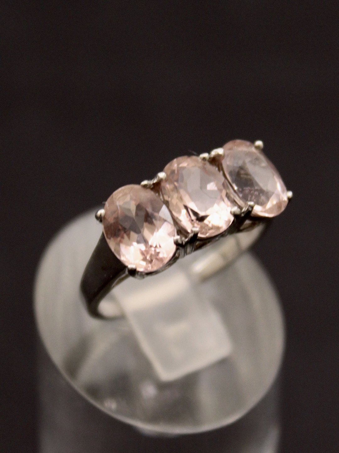 9 karat hvid guld ring størrelse 56 med 3 let pink stene emne nr. 623829