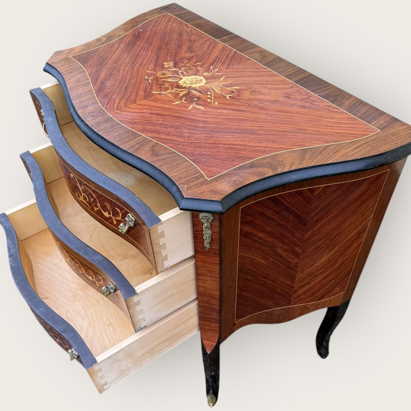 Chest of drawers with intarsia, 3 drawers, some signs of wear, Dimensions: HxWxD 68x70x39cm