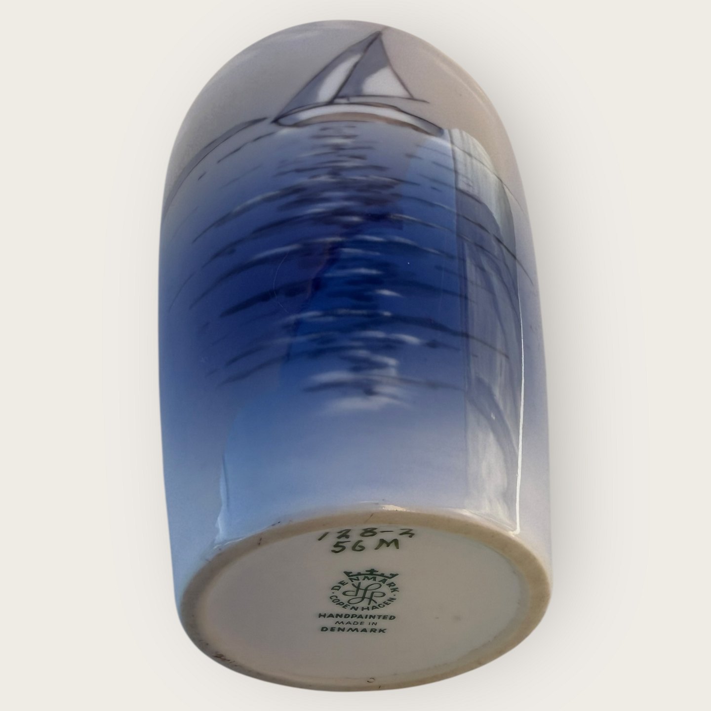 Lyngby vase with sailing ship, #128-2, height 17.5cm, fine condition