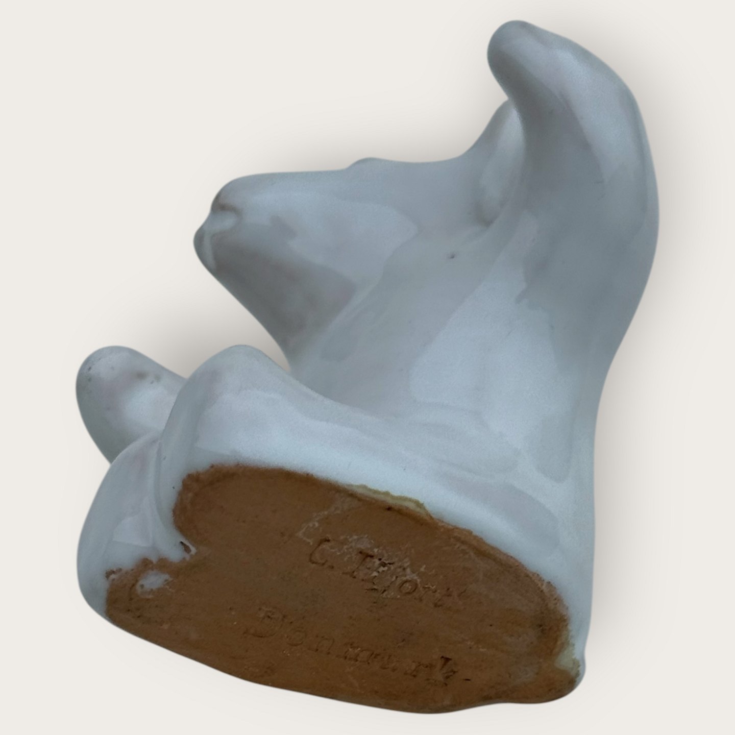 Bornholmsk keramik, Hjorth, Bjørne orkester, Tilskuer, bjørn med hvid glasur, ca. 5,5x5,5cm *Pæn stand*
