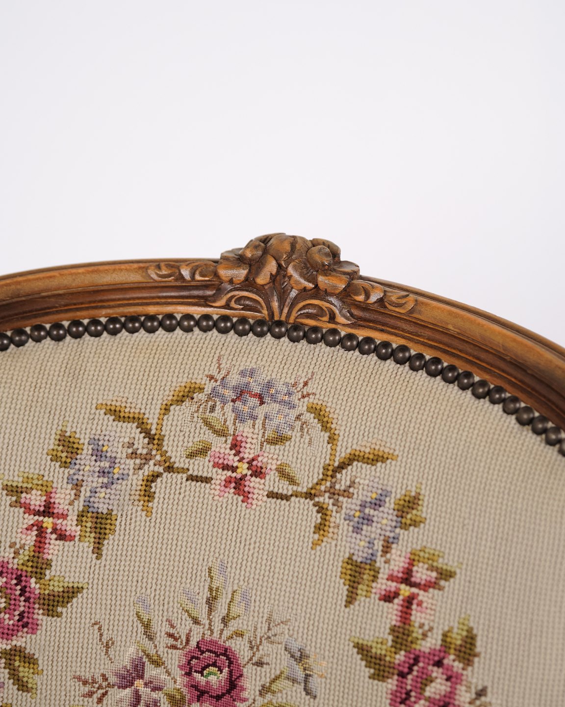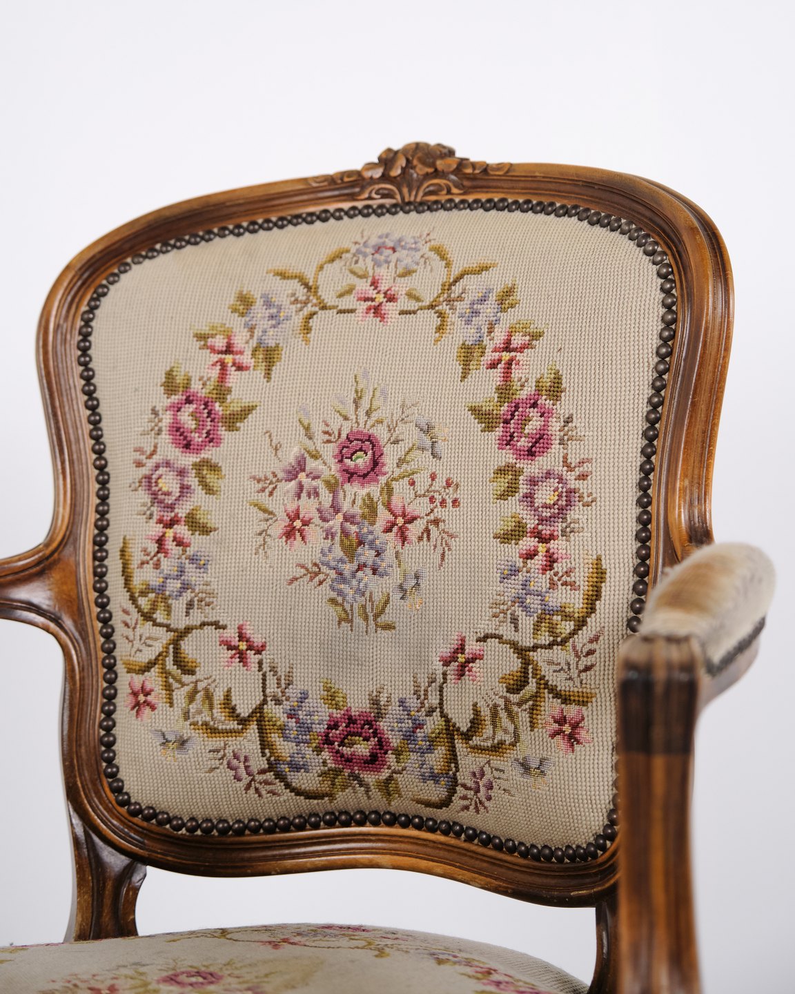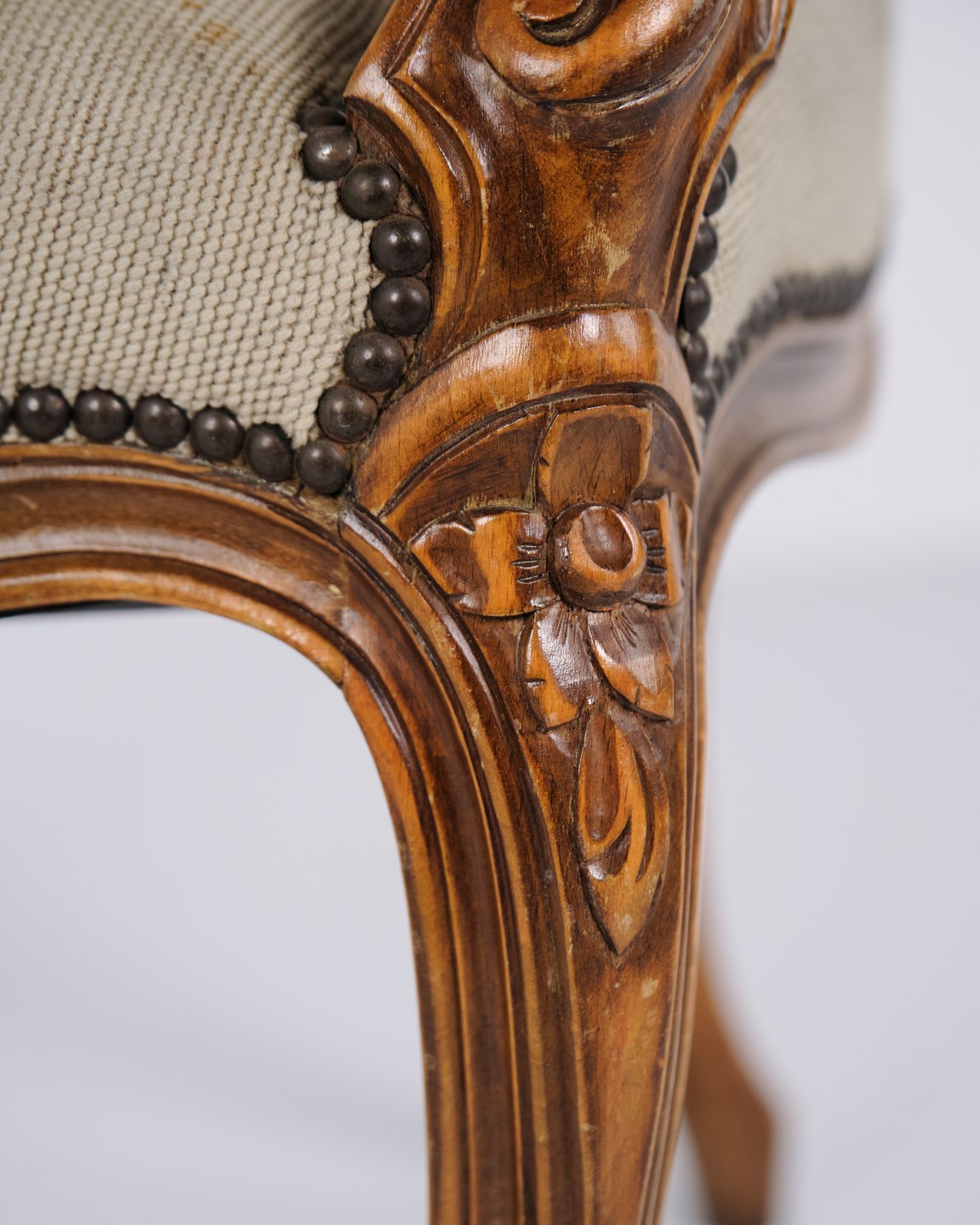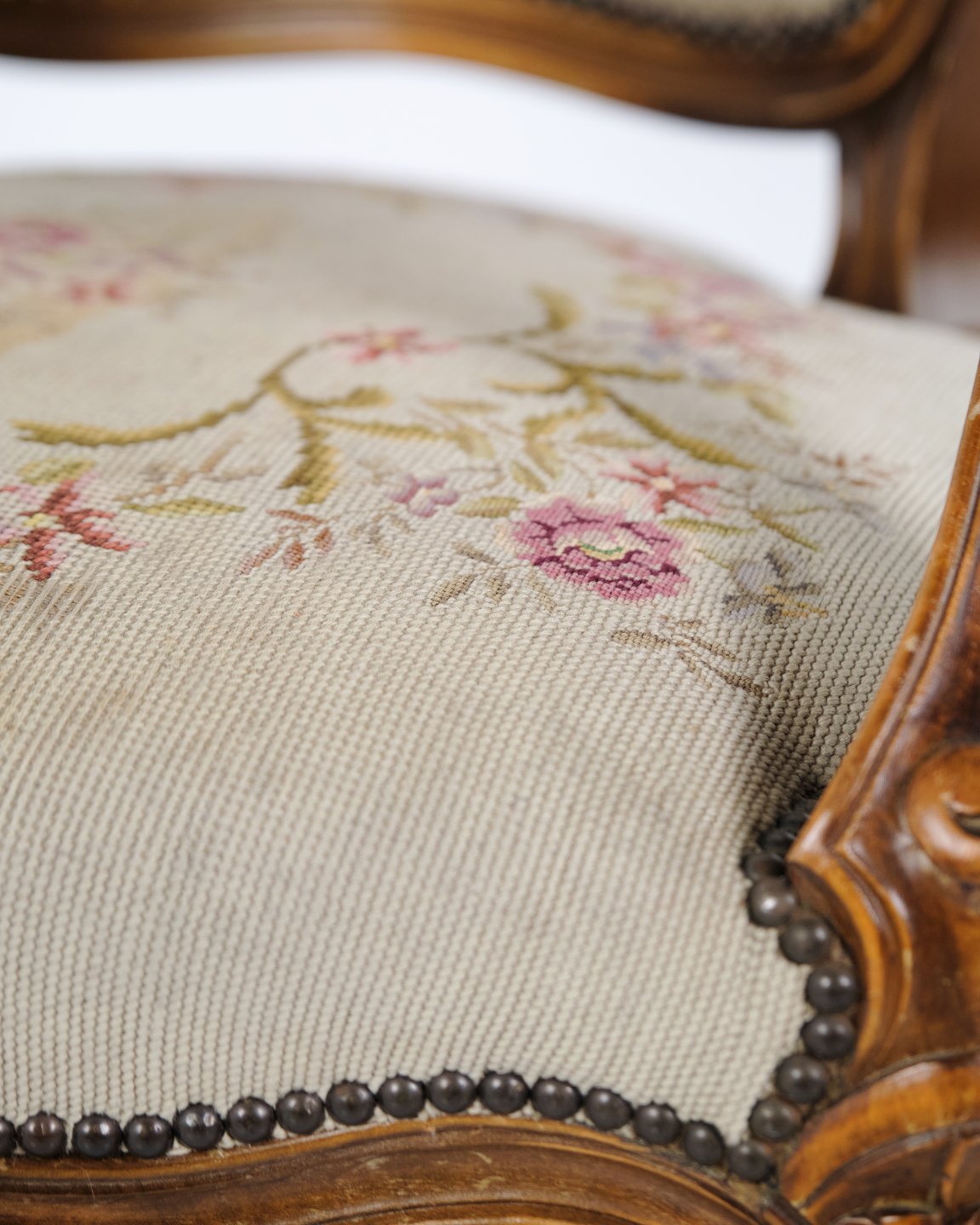 Nyrokoko Armstol med Buede Ben og Blomstret Stof, 1930erne