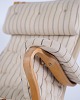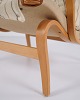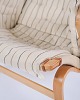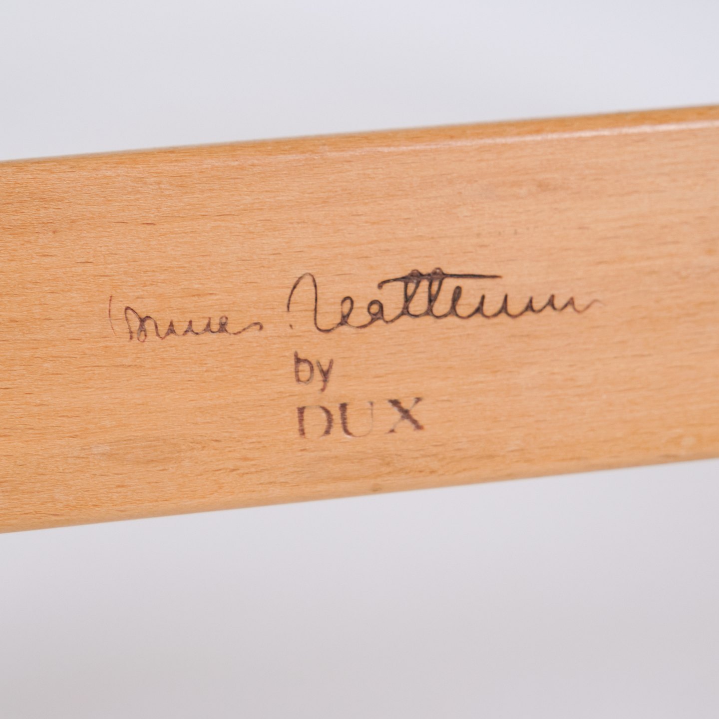 Fauteuil Bruno Mathsson Pernilla modèle 69 de DUX en tissu rayé et bois de hêtre. Design scandinave classique des années 1960.
