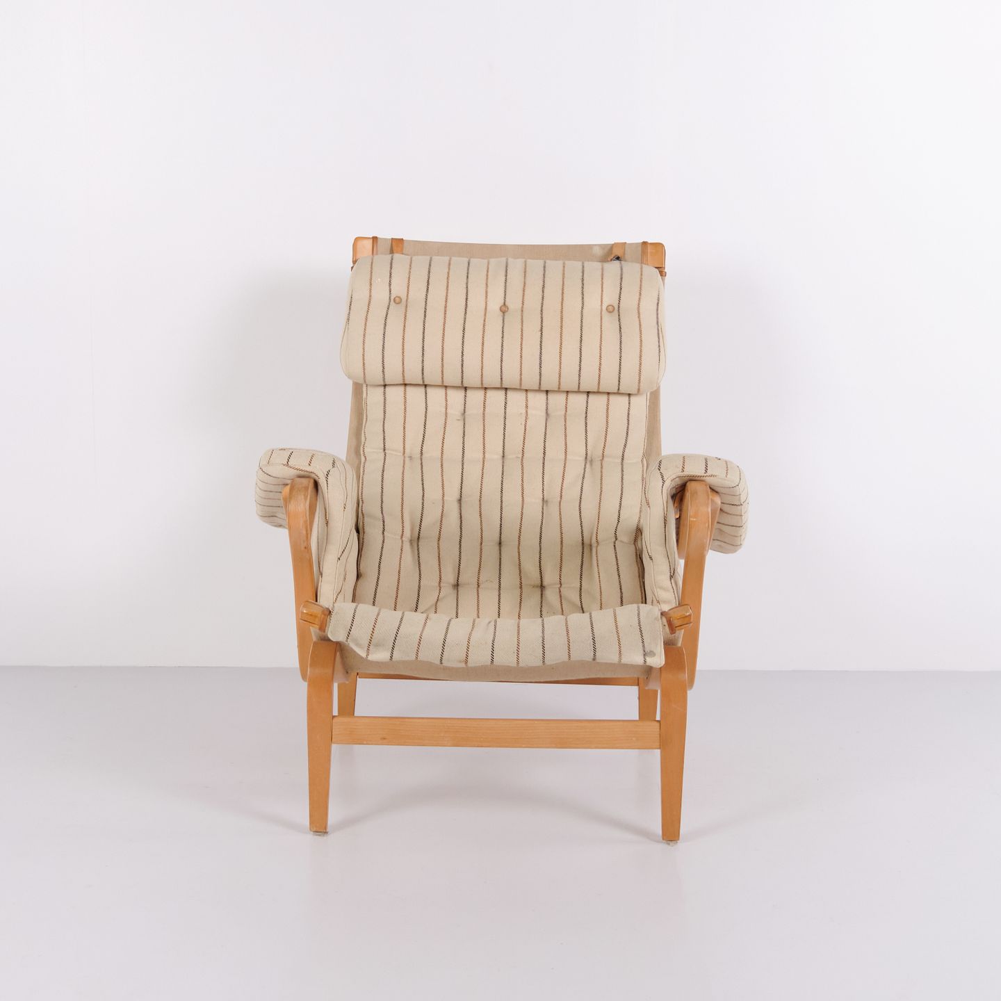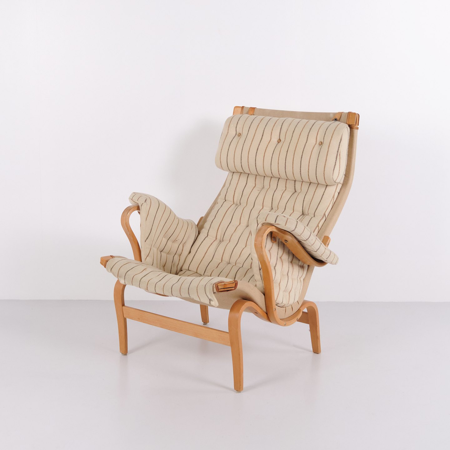 Fauteuil Bruno Mathsson Pernilla modèle 69 en tissu rayé pour DUX, années 1960