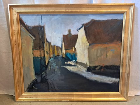 Maleri af Dragør By i guldmalet ramme, af : Mogens Amdi Thorsen (1924-2016)