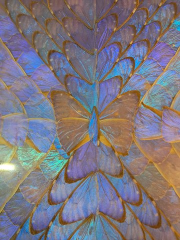 Sofabord i massivt bøgetræ med glasplade og sommerfuglevinger, fra 1980erne.