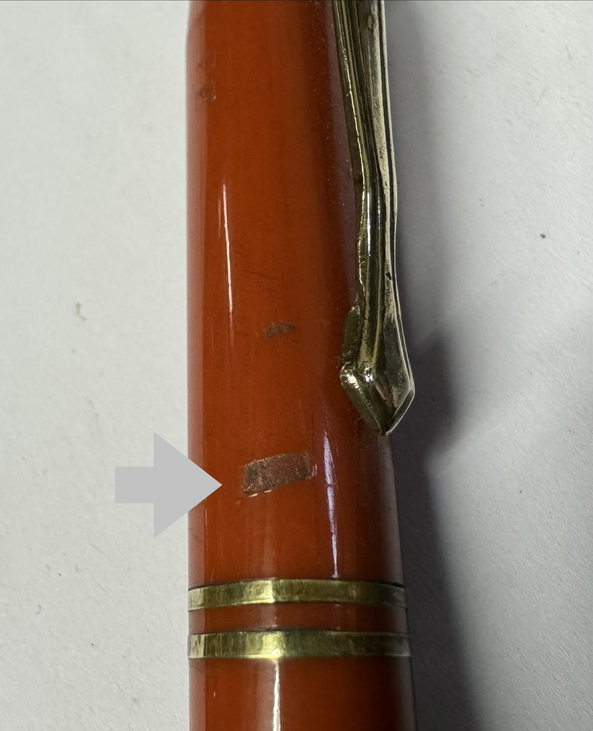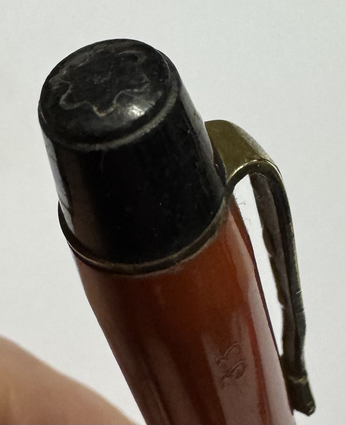 Slank vintage koralrød Montblanc 33 skrueblyant fra omkring 1950. I fin stand uden skader. Mindre ridse ( se foto med grå pil). Klar til at blive brugt. 12,8 cm
