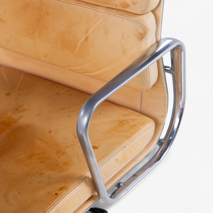 EA 219 - Højrygget kontorstol i patineret naturlæder på stel af stål. Mærket fra producent.