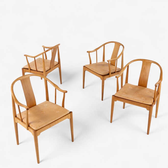 FH 4283 - Kinastol i kirsebær med hynde i patineret naturlæder. Mærket fra producent.