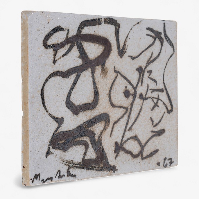 Relief i stentøj. Signeret, 1967. Stemplet fra producent.