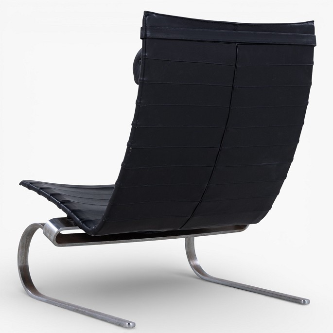 PK 20 - Armchair in original black leather with neck cushion and spring steel frame. Designed in 1968.