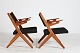 Par easy chairs fra 1960'erne fremstillet af massiv eg