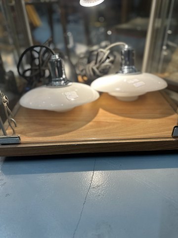 PH Lamper 2/1 pendler med opal glas skærme og krom pæn og flot stand , 2 på lager