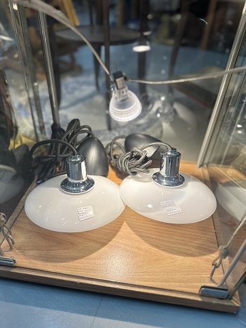 PH Lamper 2/1 pendler med opal glas skærme og krom pæn og flot stand , 2 på lager