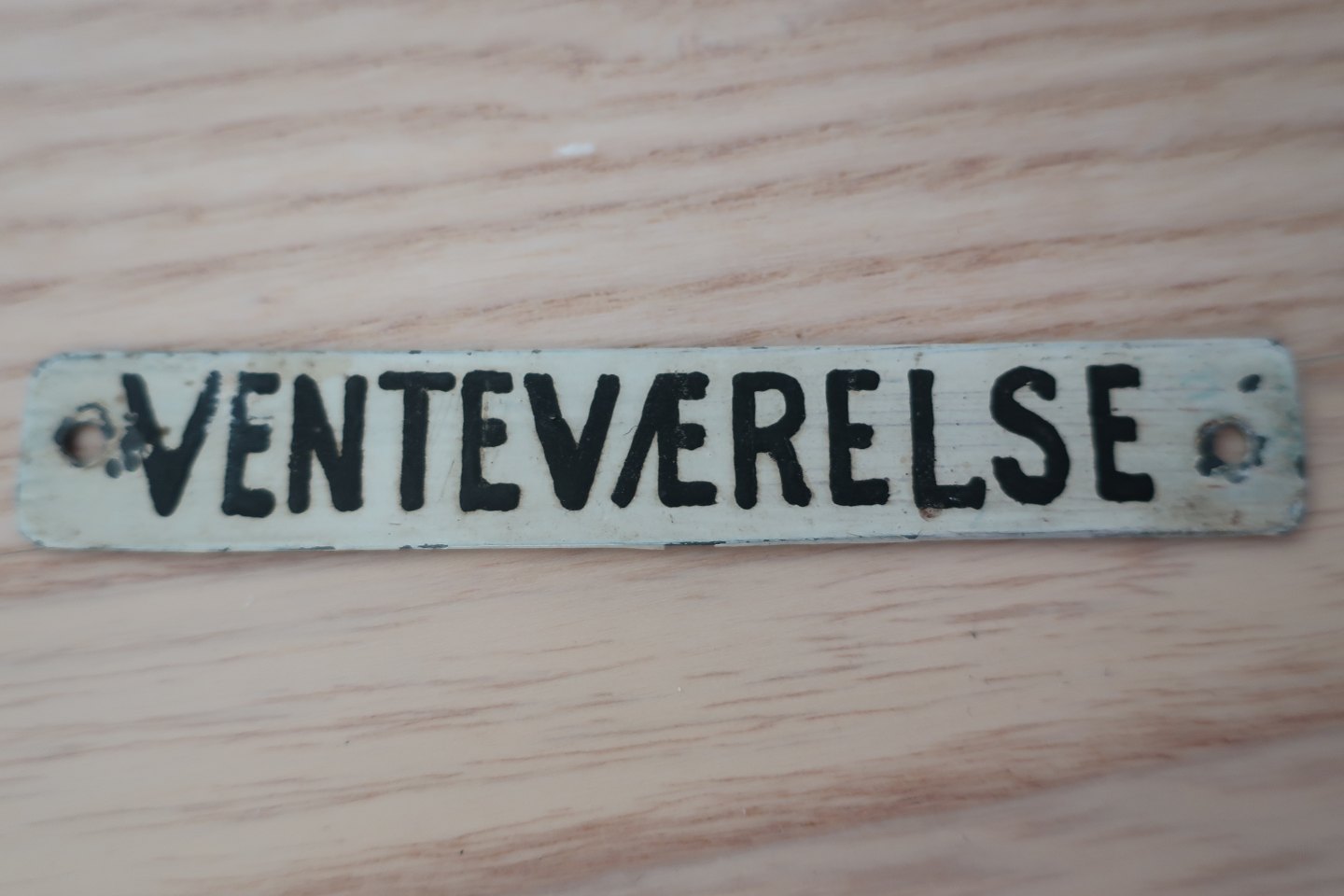 A little signboard made of enamel Text: Venteværelse ( Waiting room) In a good condition Articleno: L1006