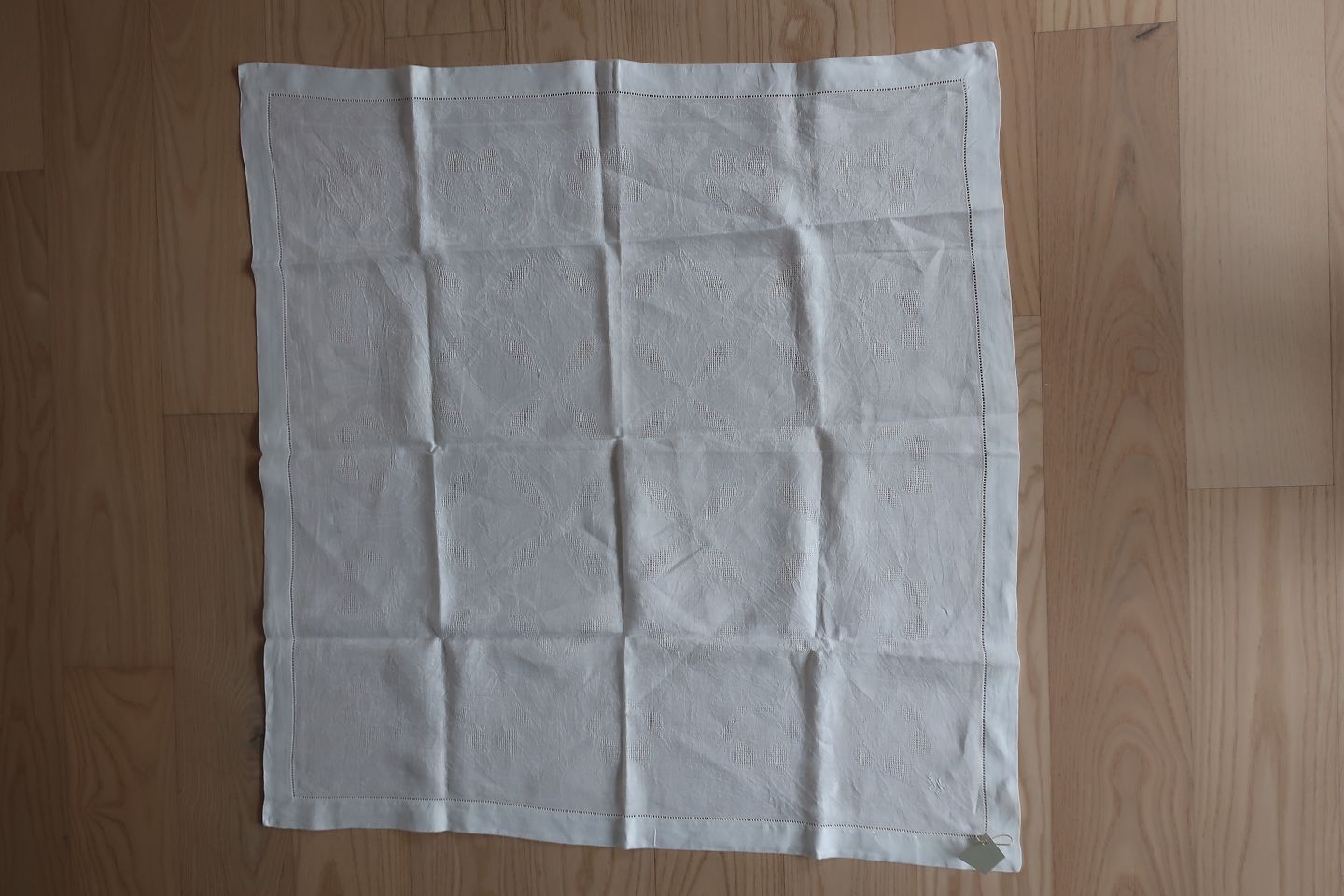 Old table cloth With embroidery in white- made by hand About 82cm x 82cm In a good condition Articleno.: 82cm x 82cm