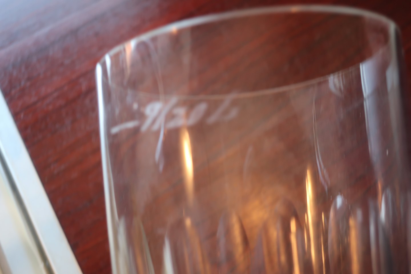 Antikke toddy-glas på stilk Med oliven slibning Start 1900-tallet H: 18,5 cm B: 9.5 cm 9/20L Haves 2 stk God stand Varenr.: KH1006