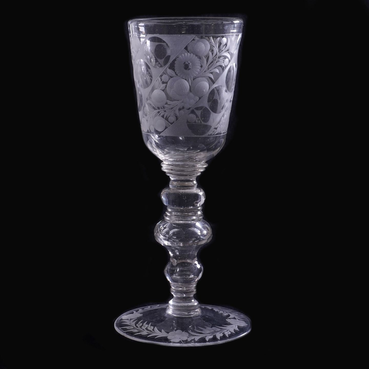 Tysk glaspokal med indgraveringer i form af stiliserede blomster