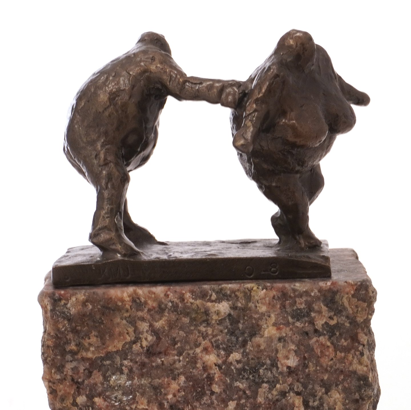 Keld Moseholm bronzeskulptur. Keld Moseholm, 1936-2023, skulptur i bronze forestillende mand og kvinde. Signeret Keld Moseholm, kunstnerens eget eksemplar 0/8. H inkl sokkel: 19,5cm. L: 8,5cm. B: 6cm
