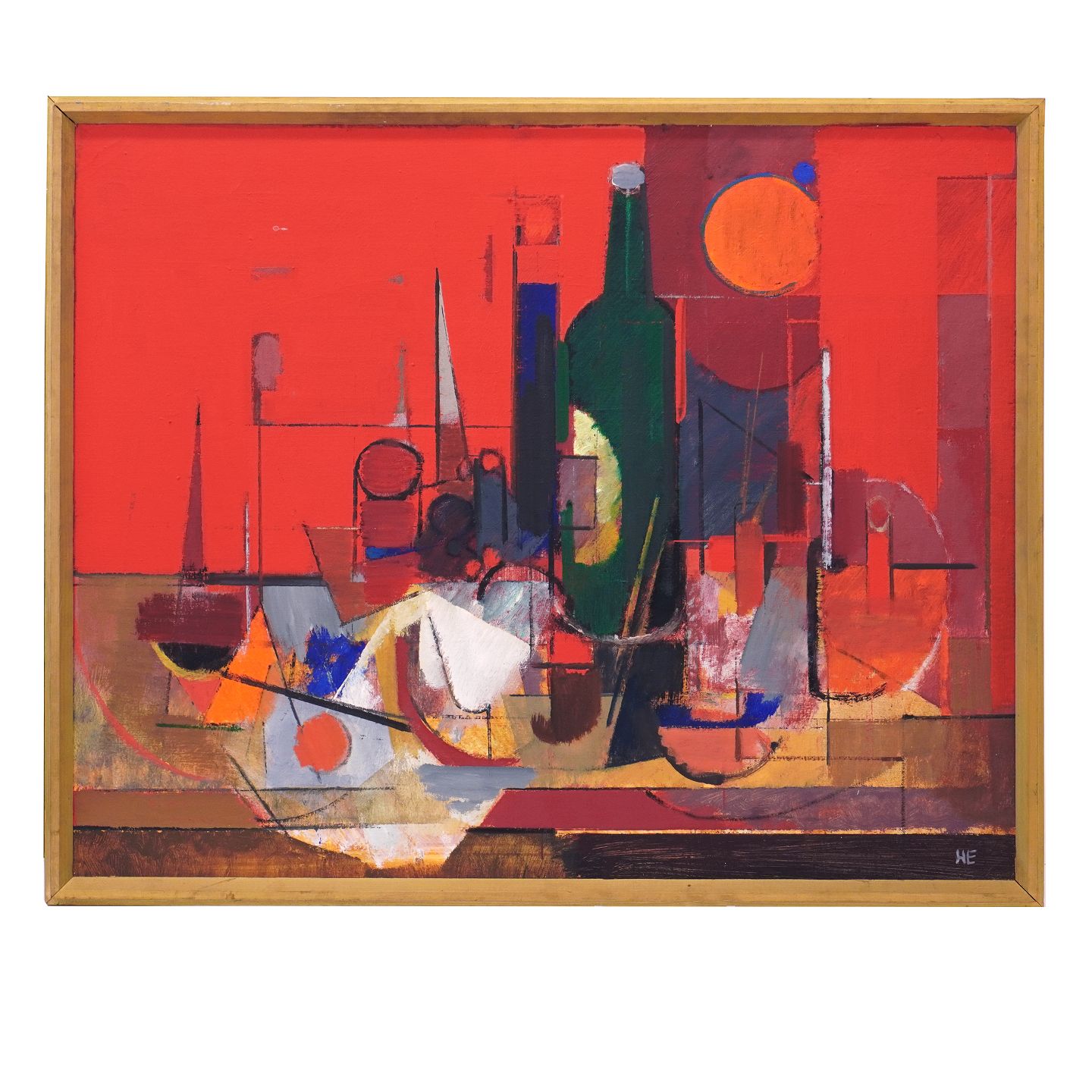 Helge Ernst, 1916-91, olie på lærred. "Den Grønne Flaske". Signere tog dateret 1975. Lysmål: 59x73cm. Med ramme: 64x78cm