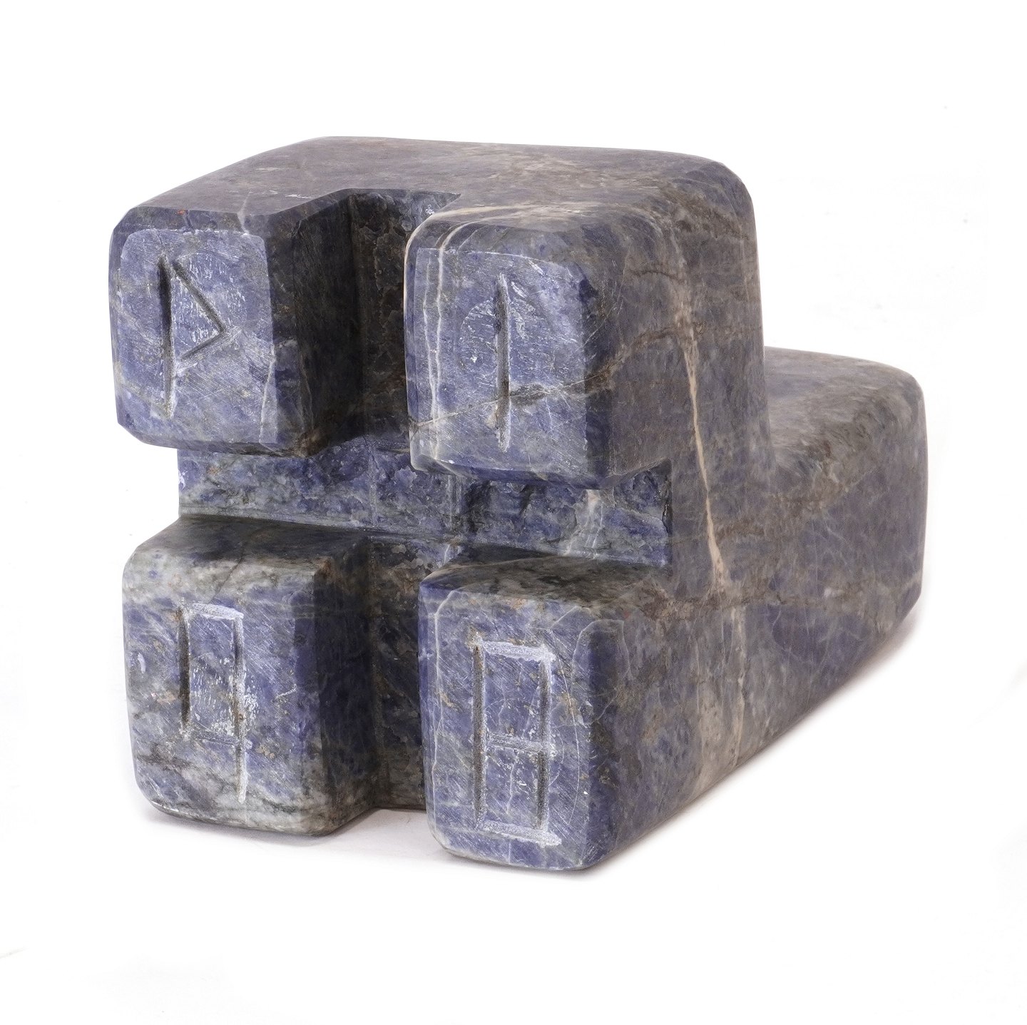 Poul Isbak, f. 1943, skulptur i form af stol udført i afrikansk blå granit