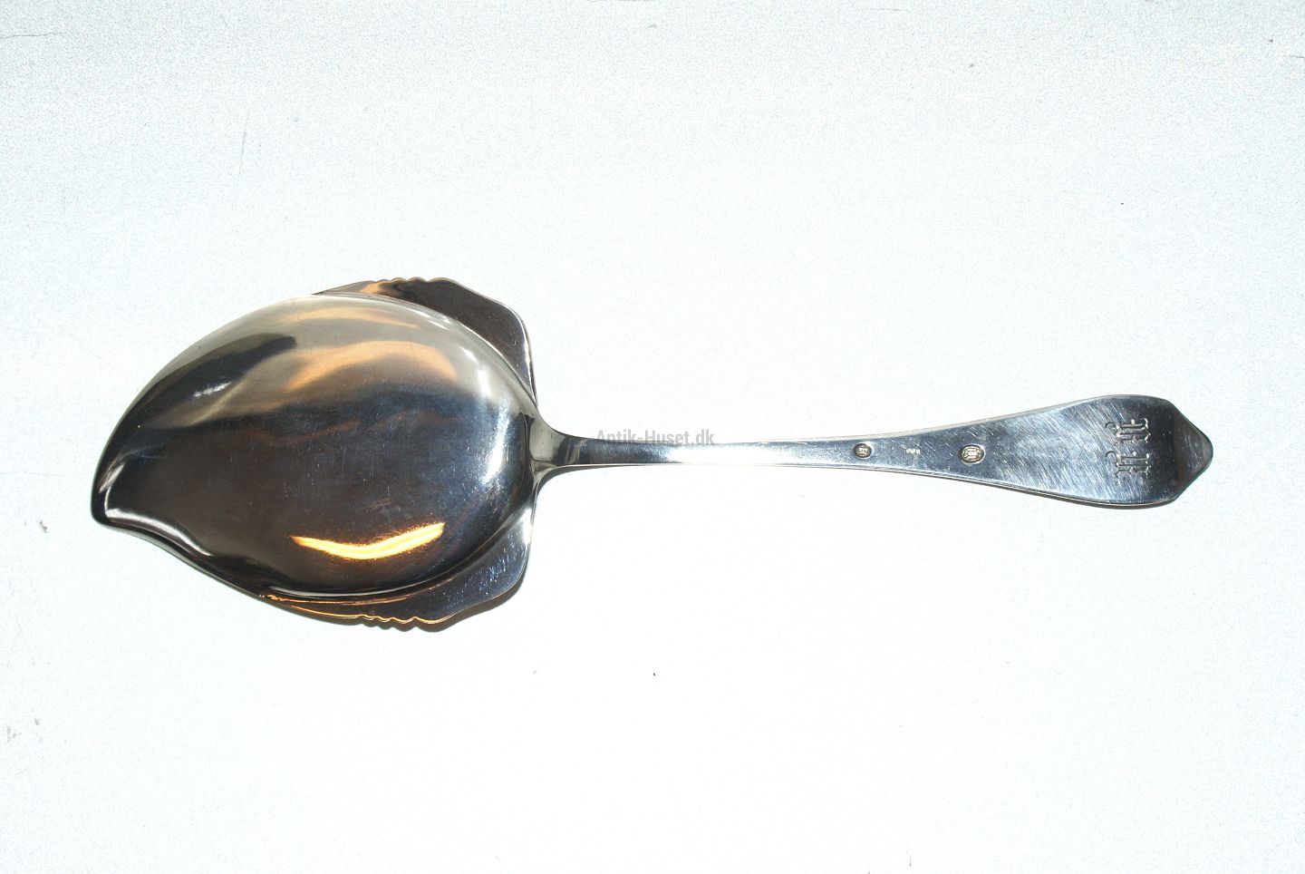 Fish serving spade Jægerspris Silver Cohr Length 22.5 cm. with engraved initials Used and well maintained. All cutlery is polished and packed in a bag