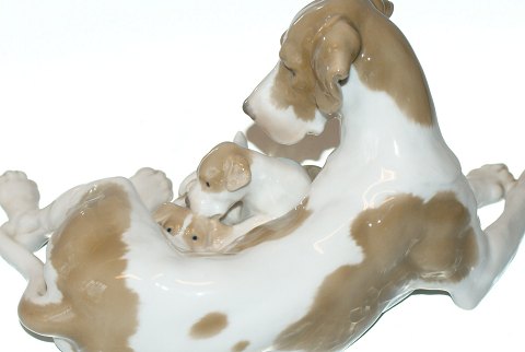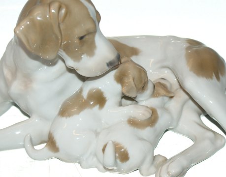 Bing & Grondahl Figurine, Pointer with her puppies Decoration number 2111 Factory second Length 30 cm. Height 13.5 cm. Beautiful and well maintained