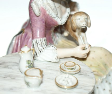 Sjælden Kongelige Julliane overglasur figur, Dame ved Te bord