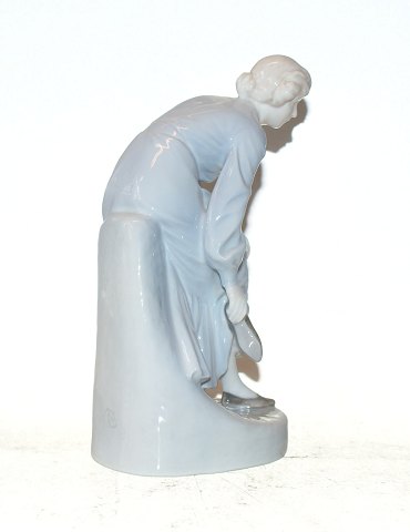 Meget sjælden Kongelig Figur, Dame tager sko på Design: Chr. Thomsen 1904 Produceret før 1923 Dek. nr. 608 1. sortering. Højde 20 cm. Perfekt stand.