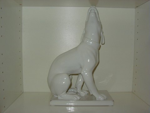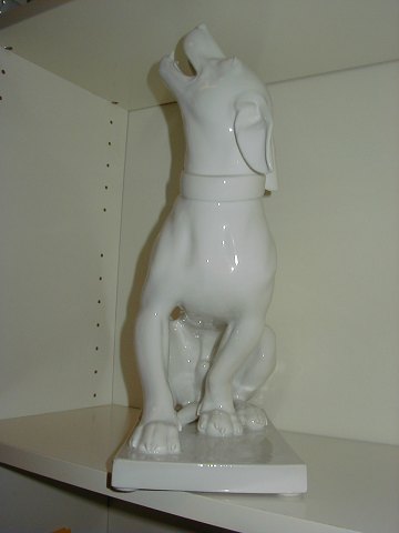 ENORMOUS Bing & Grondahl Blanc De Chine Figurine, Dog on base This figurines has no decoration number Factory second (due to small black eges on the base) Measures 41 cm. in height and 27 cm. in length Perfect condition