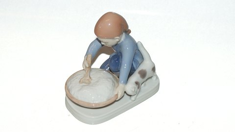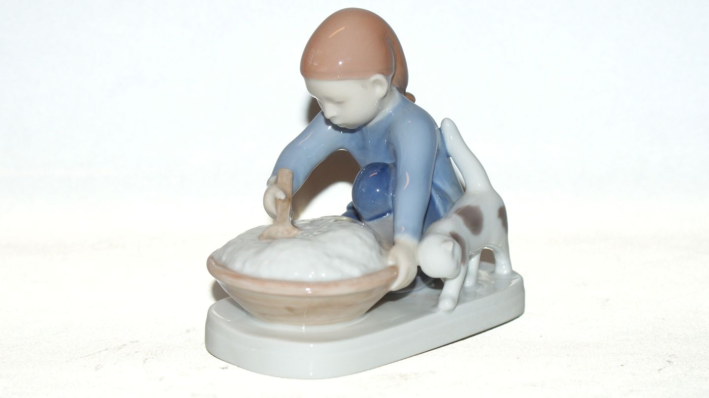 Bing & Grøndahl Figur, Nisse med kat og julegrød Dekorationsnummer 2305 2.sortering, Højde 12 cm. Flot og velholdt.