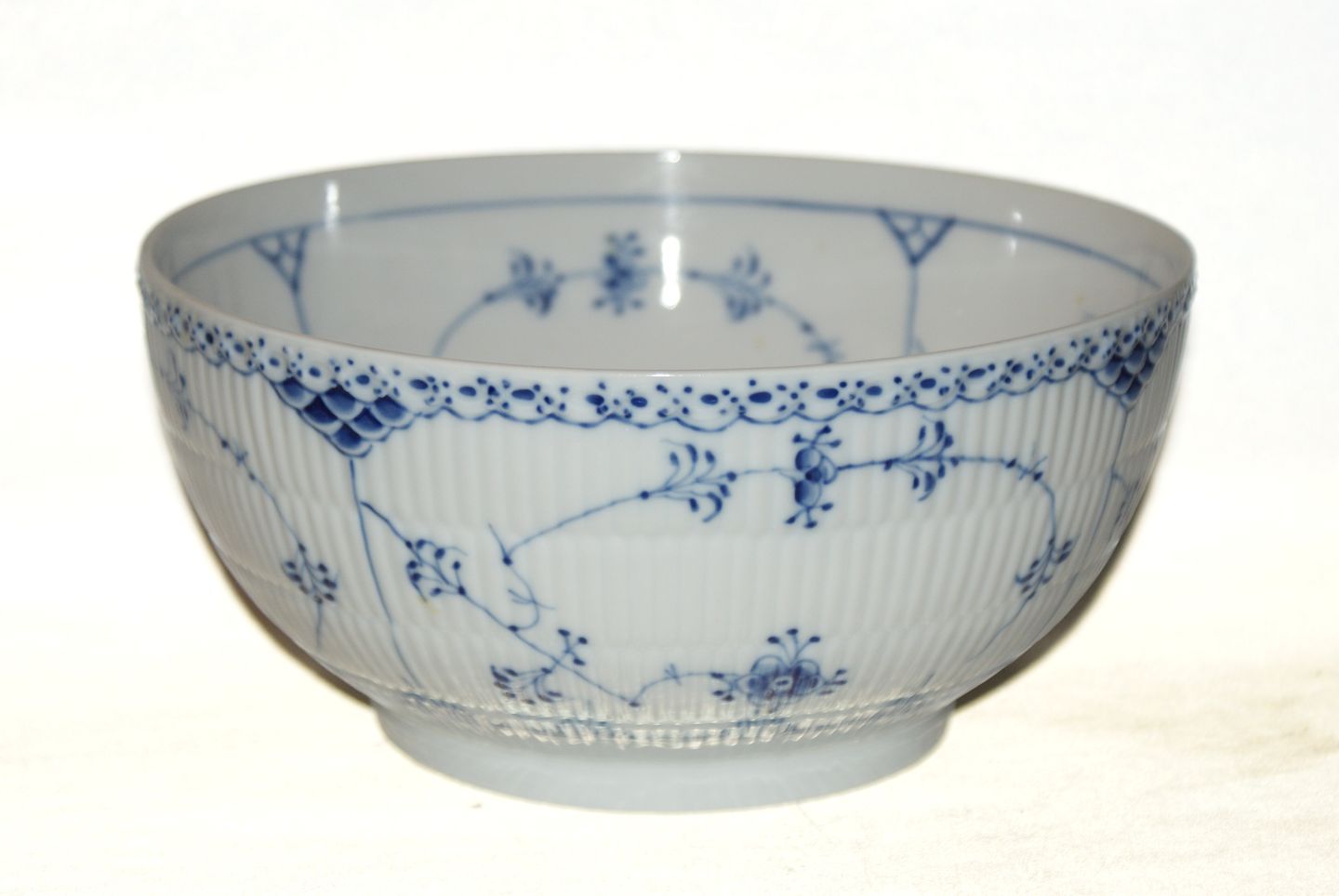 Kongelig Musselmalet Halvblonde, Stor Skål Dek. nr. 1/631 3.Sortering Højde 11,5 cm. Diameter 23,1 cm. Perfekt stand, dog skår med glasur på, se foto