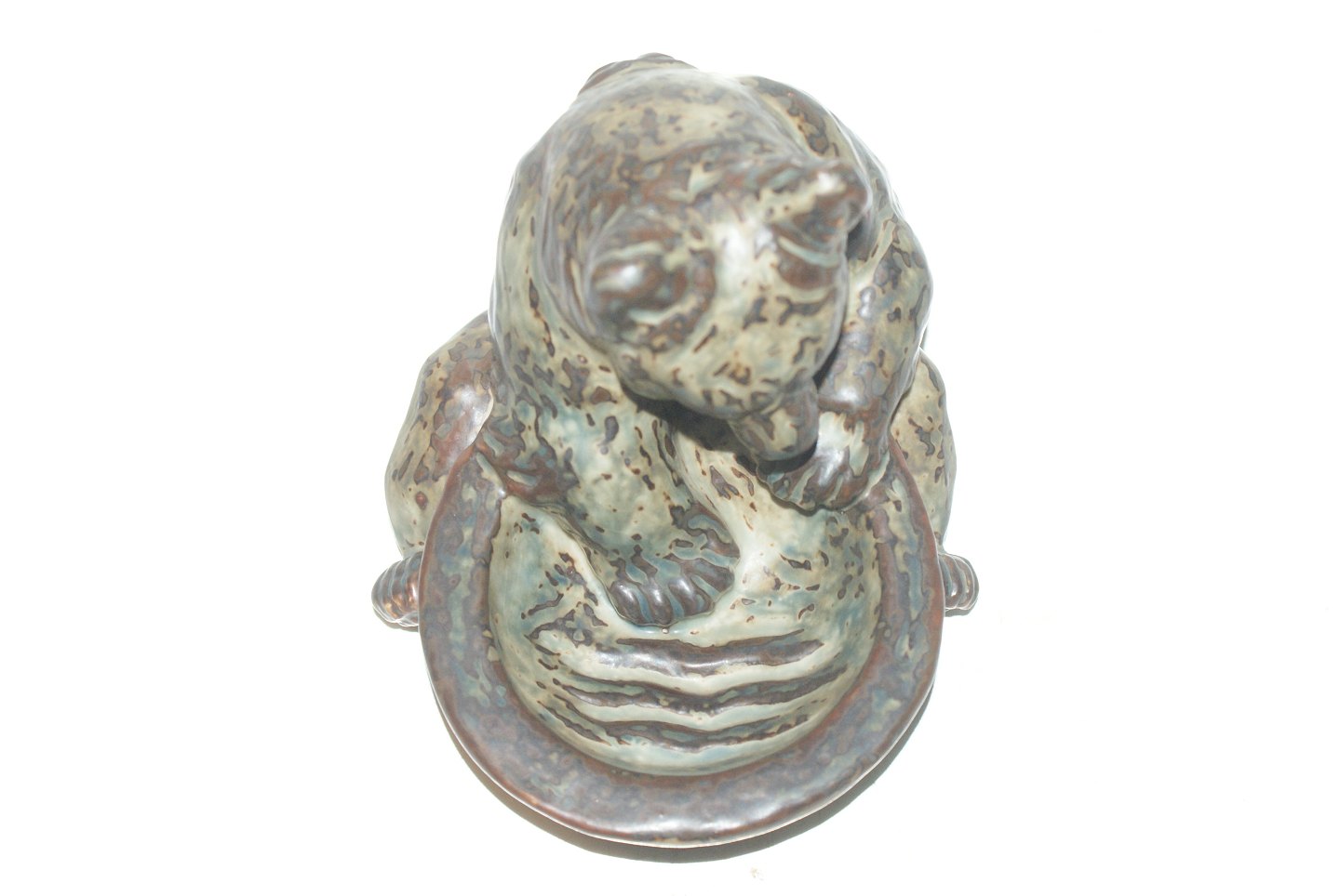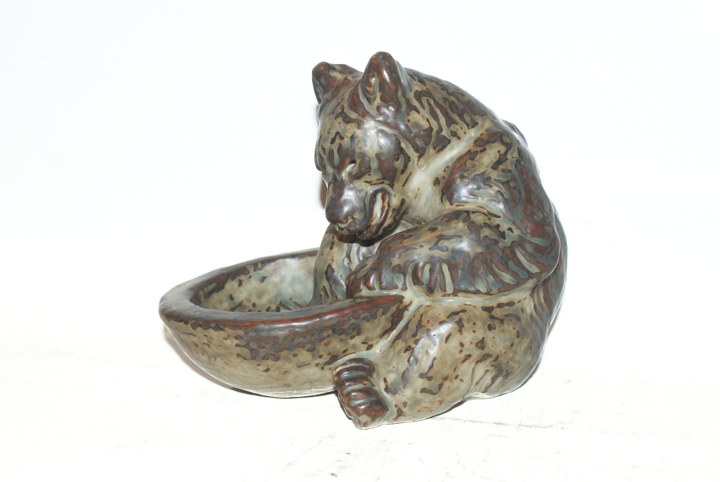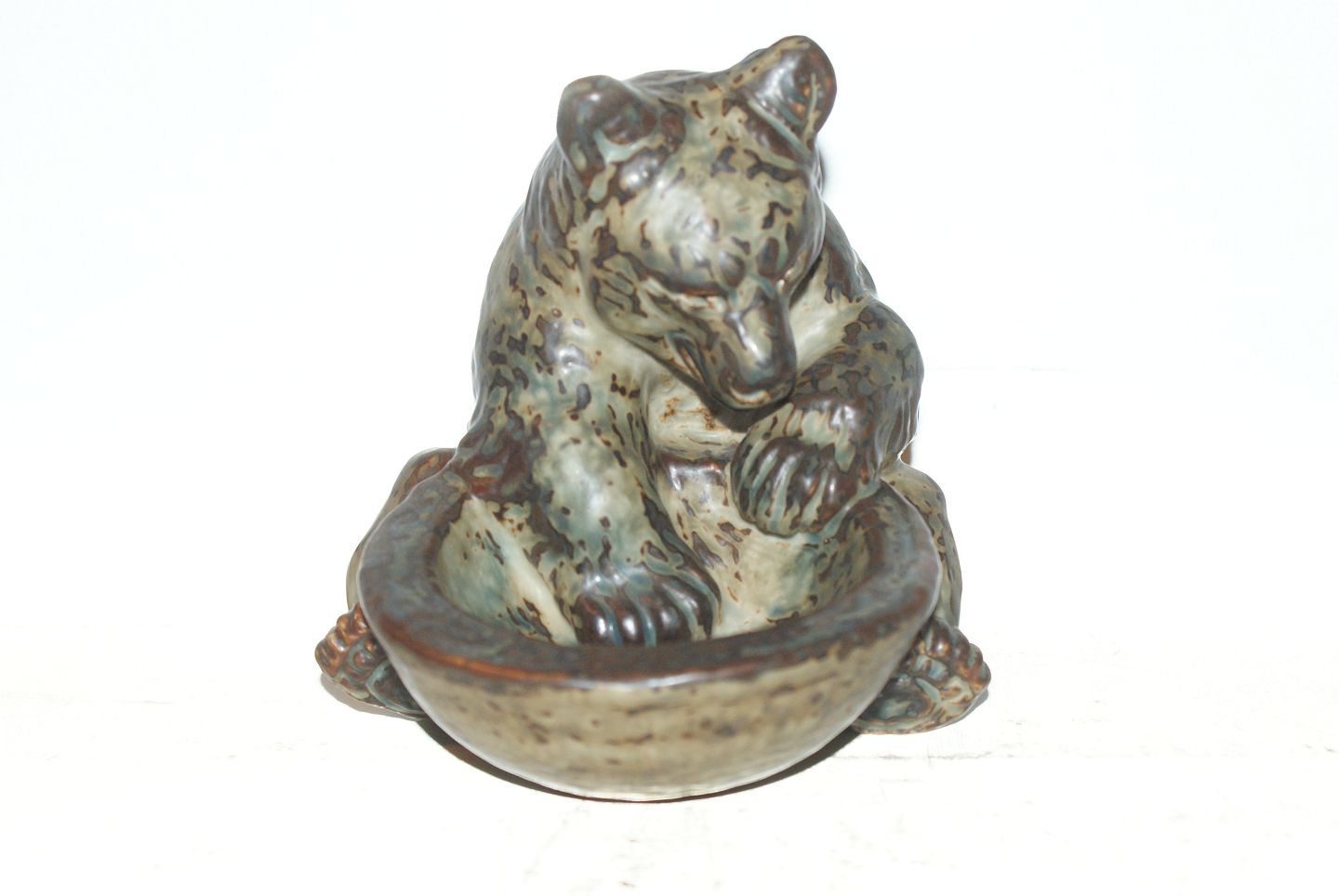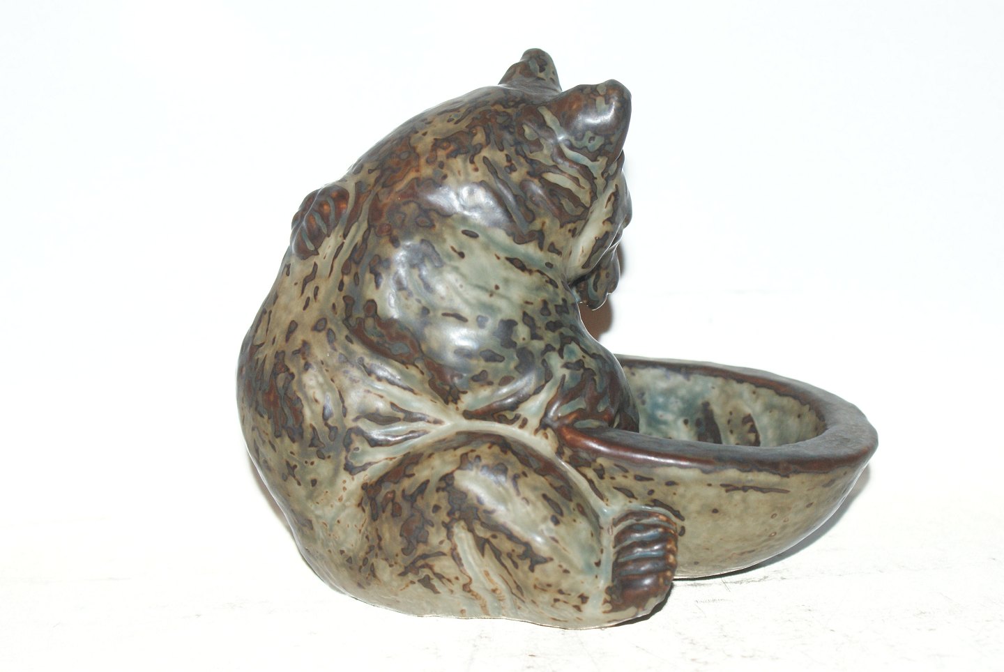 Kongelig stentøjsfigur af Bjørn med kar Designet af Knud Kyhn. Dekorationsnummer 21737 1.Sortering. Højde 14 cm. Perfekt stand