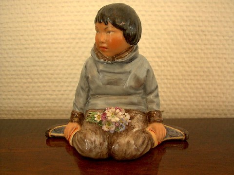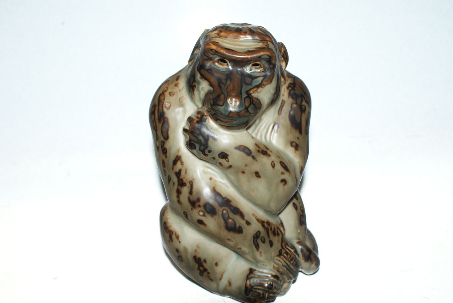 Kongelig Stentøjs Figur, siddende abe design Knud Kyhn. Dek. nr.20133 1. sortering. Højde 18,5 cm. Perfekt stand