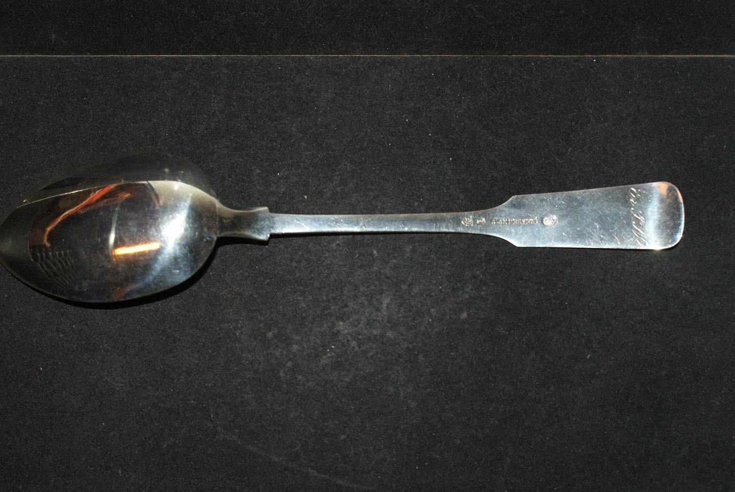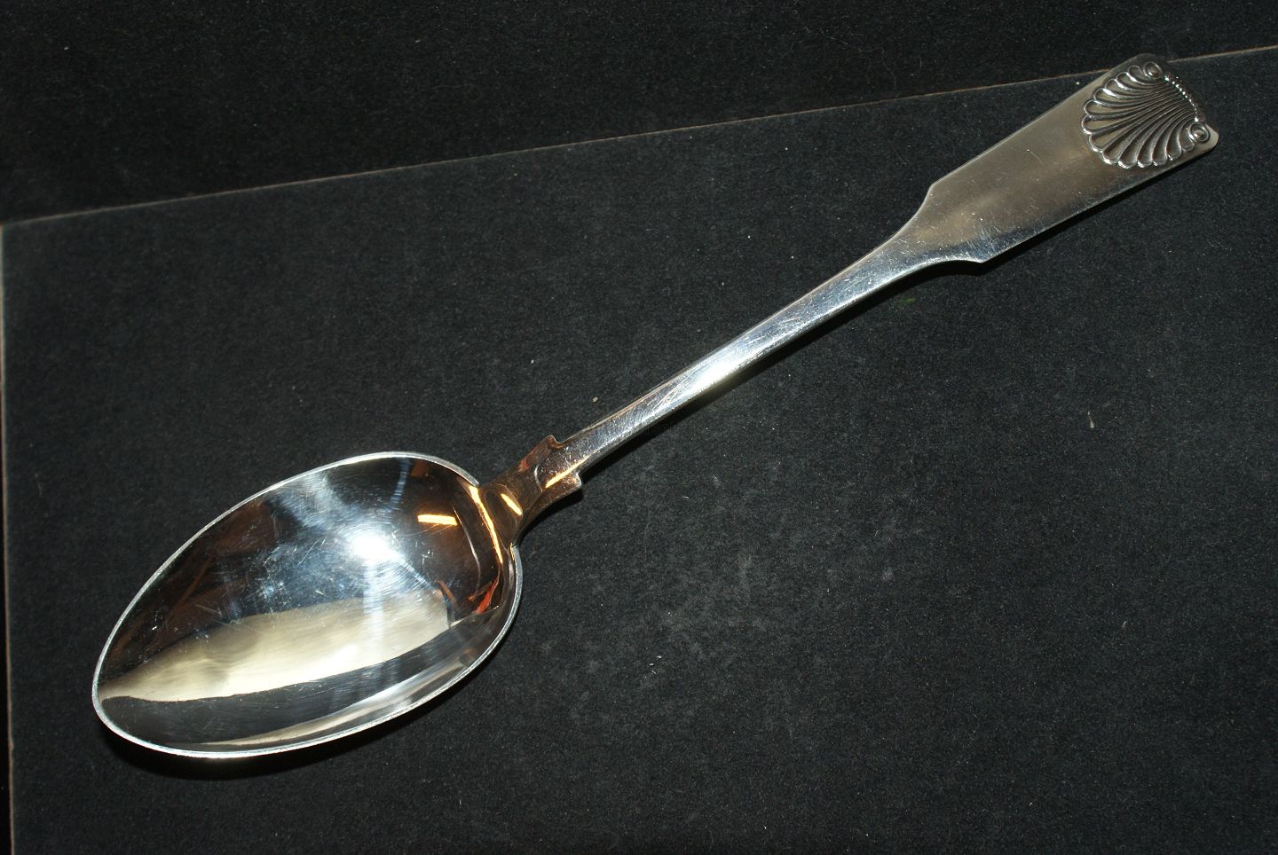 Dinner spoon Mussel Silver with engraved initials Fredericia Silver, W & S.Sørensen. with more Length 21 cm. Polished and packed in a bag Used, Beautiful and well maintained.