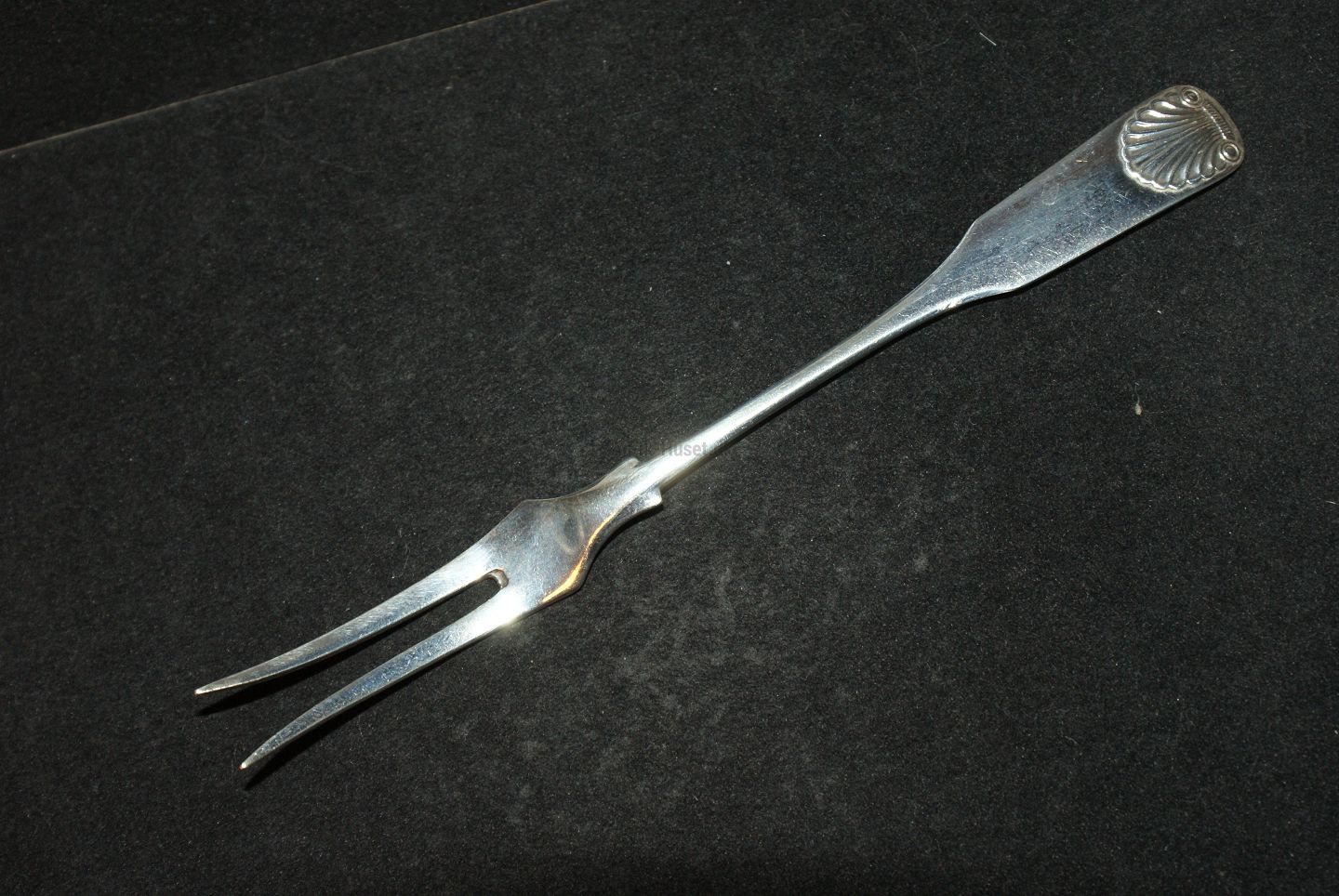 Laying Fork Mussel Silver Fredericia Silver, W & S.Sørensen. with more Length 14.5 cm. Polished and packed in a bag Used, Beautiful and well maintained.