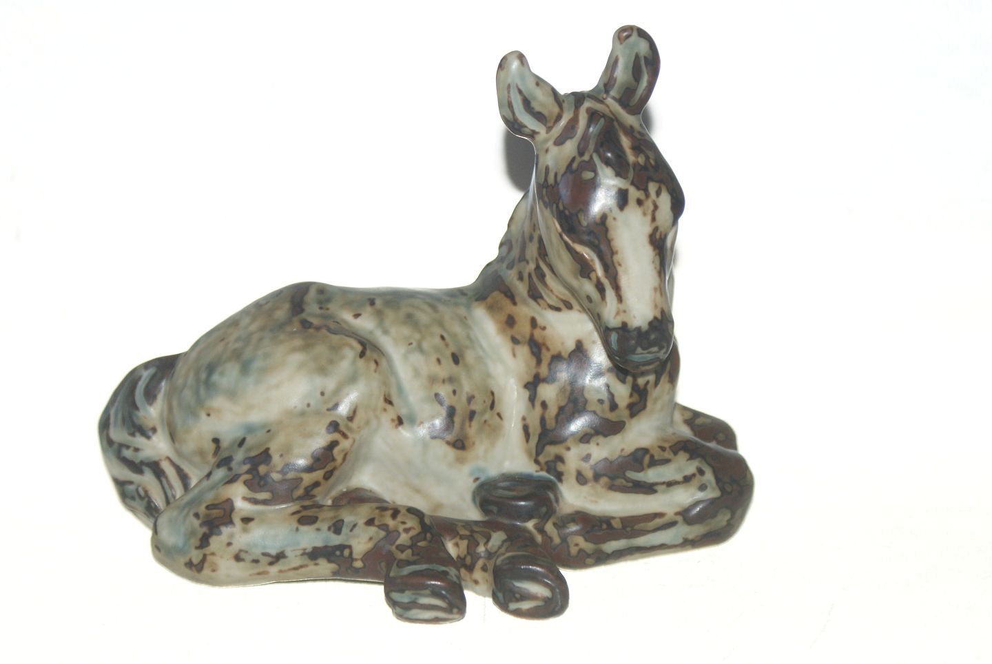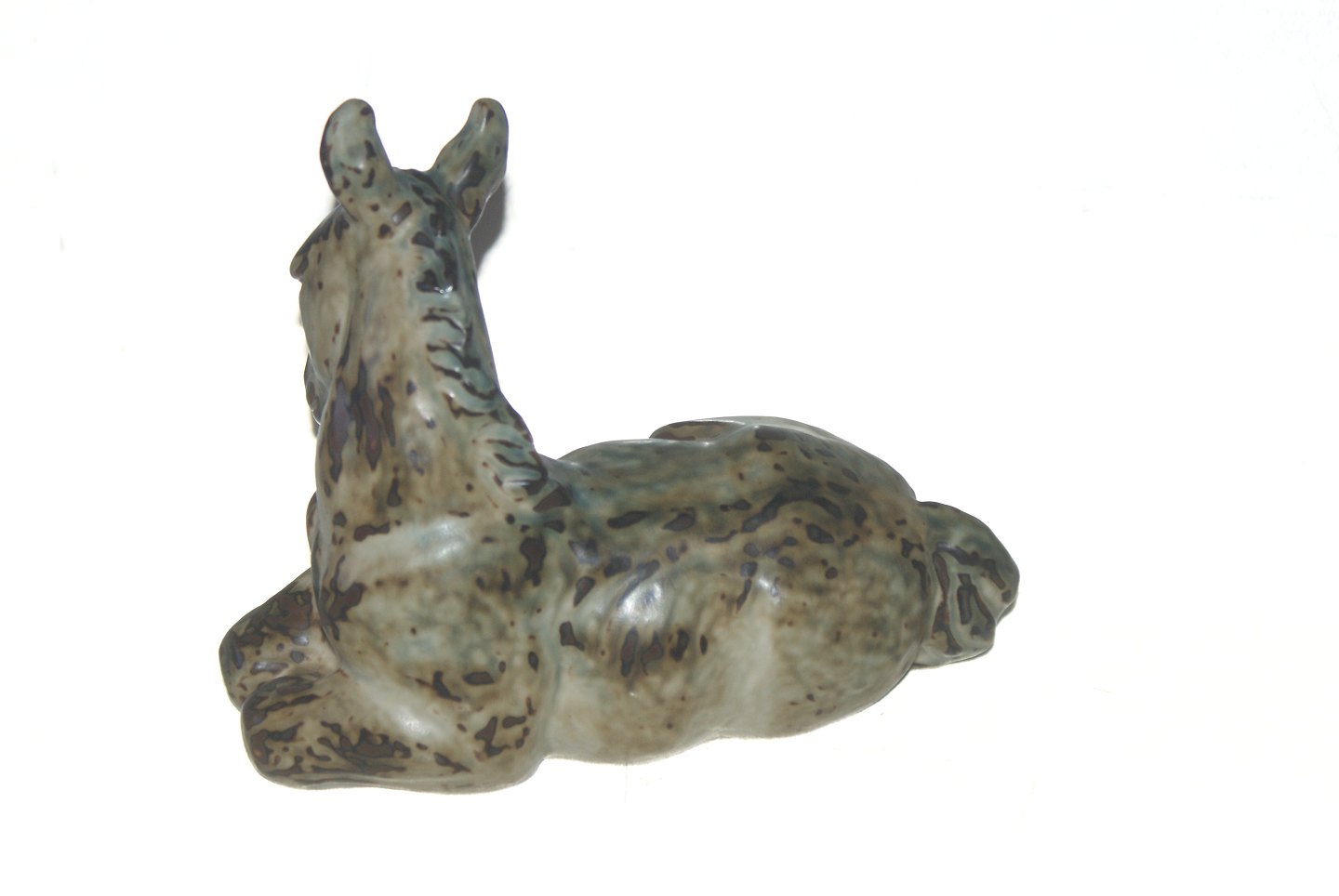 Royal Copenhagen Stentøjsfigur, Liggende Hest Dekorationsnummer 21516 1. sortering Signeret KK (Knud Kyhn) Længde 19,5 cm., højde knap 16 cm.