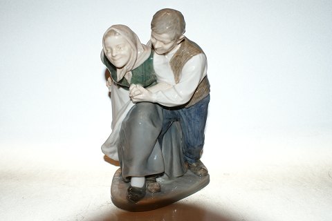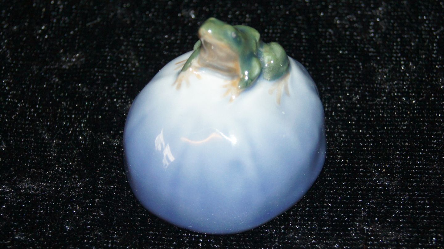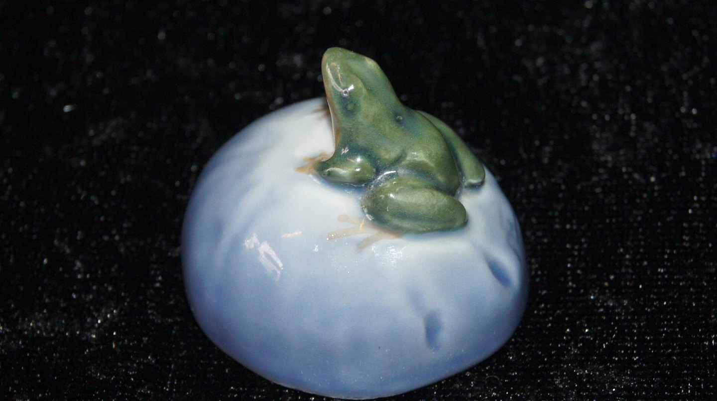 Royal Copenhagen porcelæns figur af lille frø siddende på en sten
