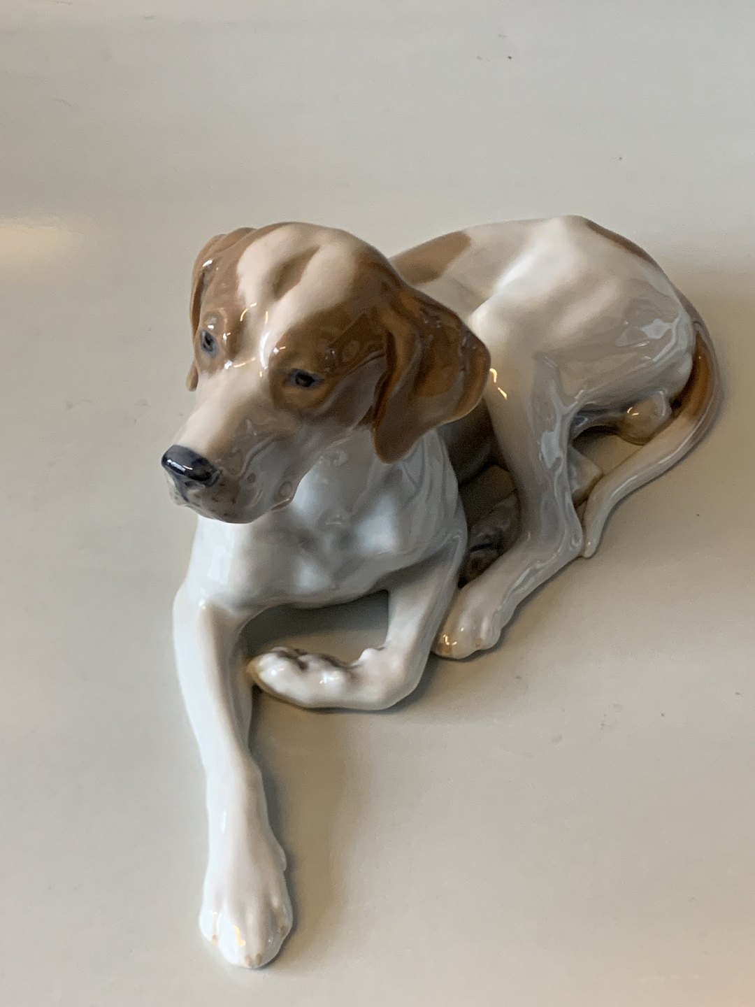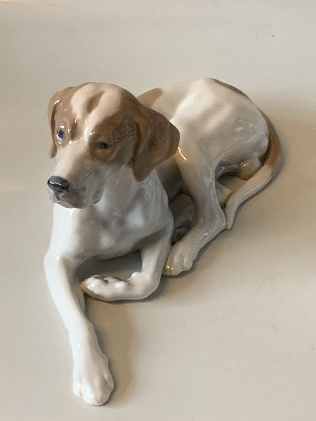 Royal Copenhagen, Liggende #Pointer Dek nr #1635, Længde 24cm Højde13cm høj, 1.sortering, Design Lauritz Jensen Pæn og velholdt stand