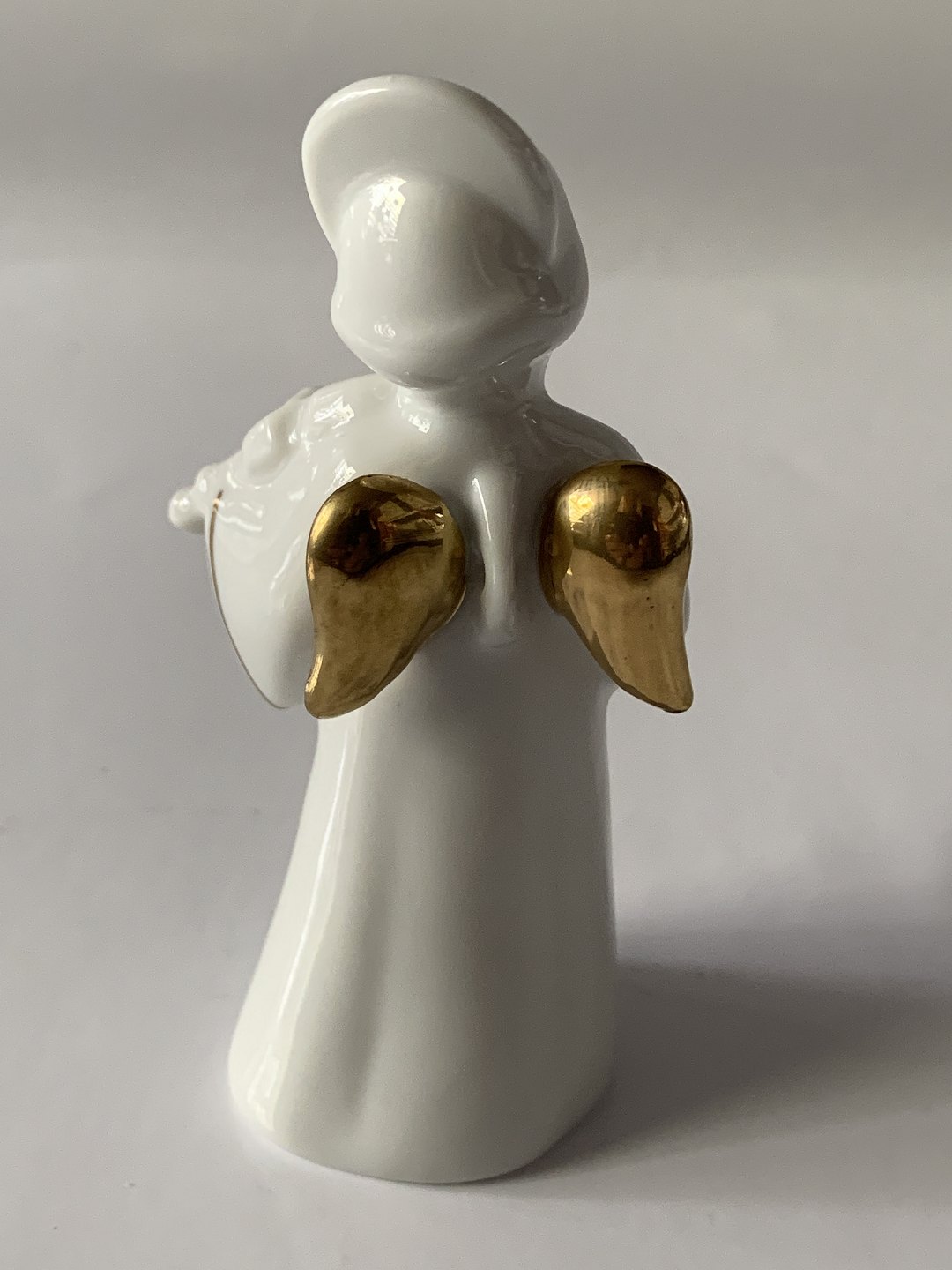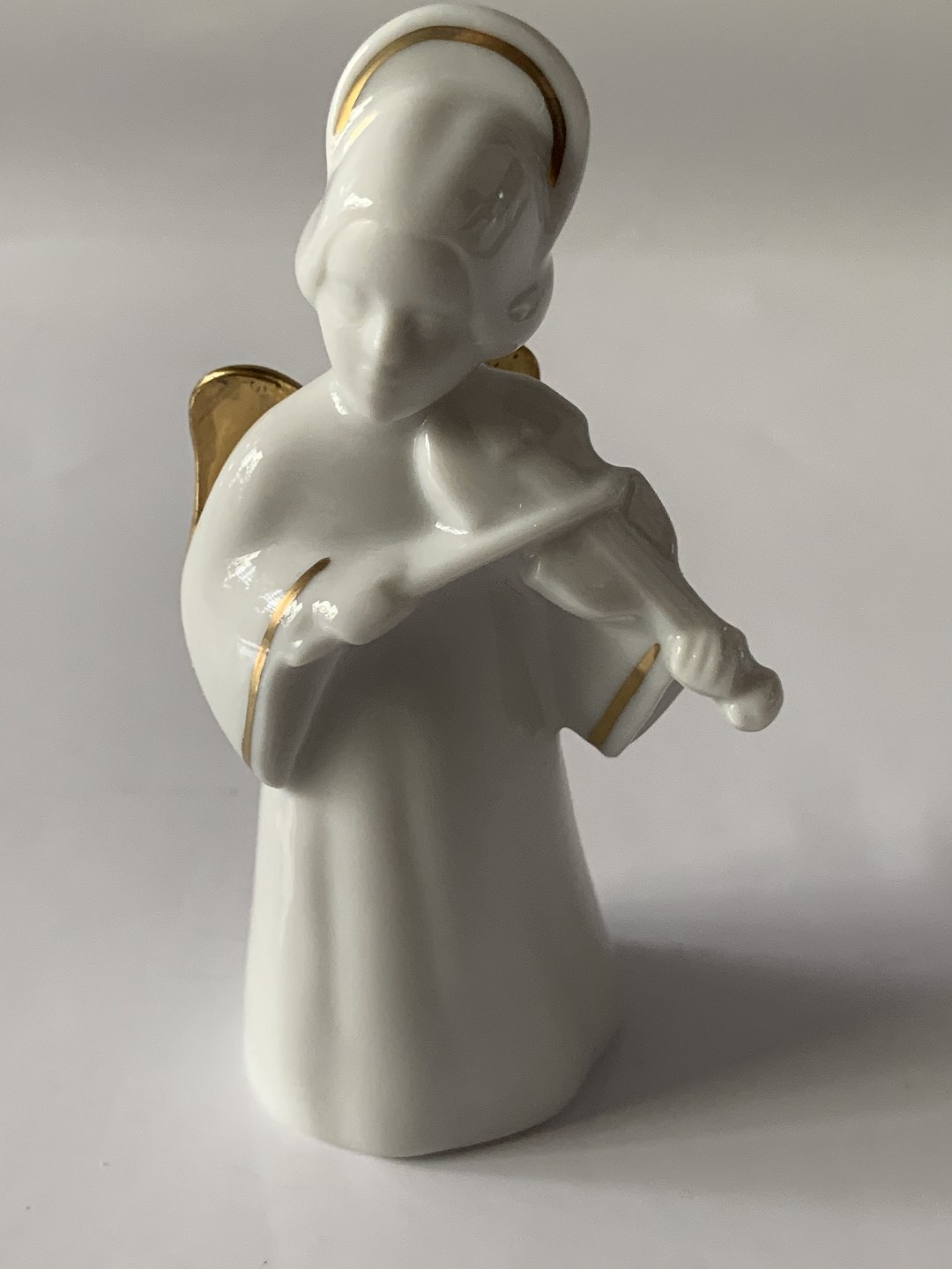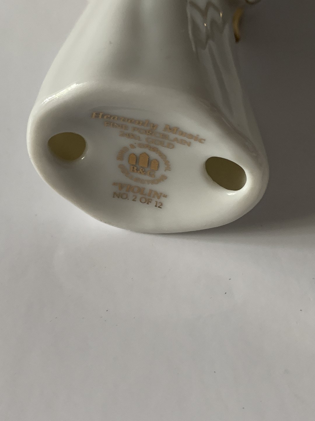 Bing & Grondahl. Heavenly Music. Violin No. 2 of 12. White porcelain angel with gold trim and gold wings (24 carat). The series is called "Angel with Instruments" and consists of 12 pieces.