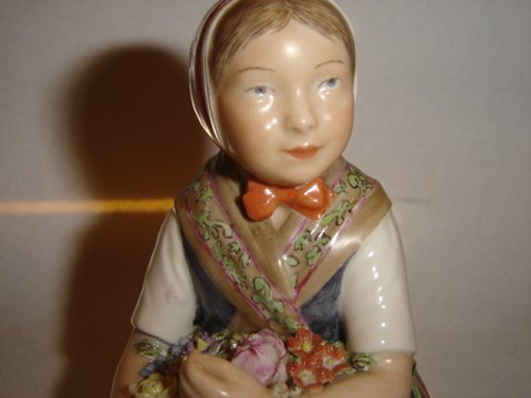 En flot Royal Copenhagen Overglasur Figur af Pige fra Slesvig. Dekorationsnummeret er 12417, 1. sortering, højde 9 cm, længde 11 cm. Perfekt stand