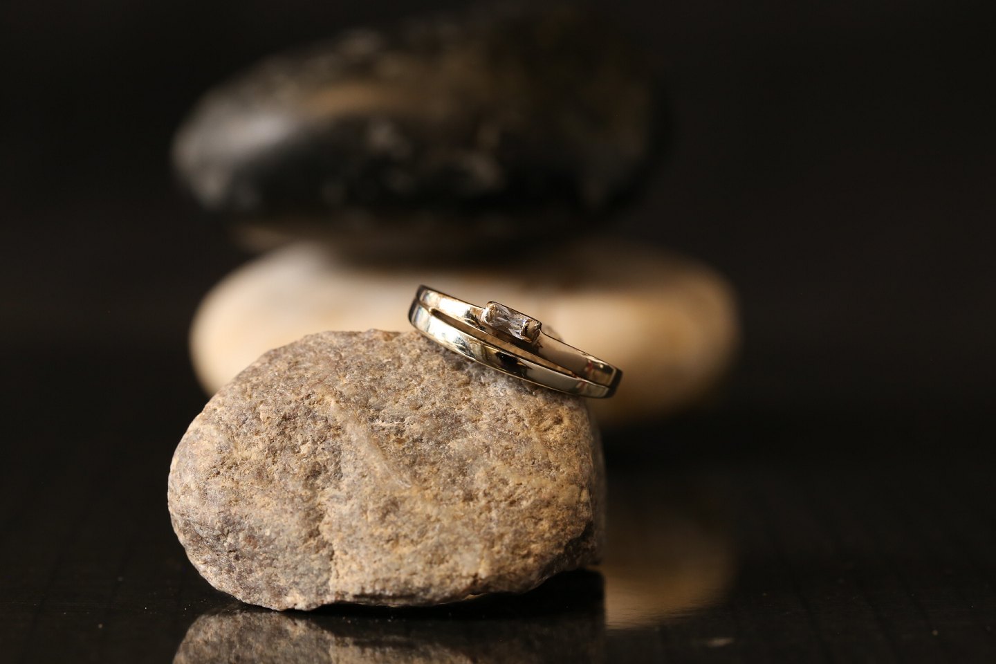 Flot damering med flotte detaljer, og klar sten på toppen. Ringen er lavet, så toppen af ringen splitter ud i nærmest en dobbelt ring. Dette giver ringen liv. Ringen kan bæres enten alene, eller i kombination med andre ringe.