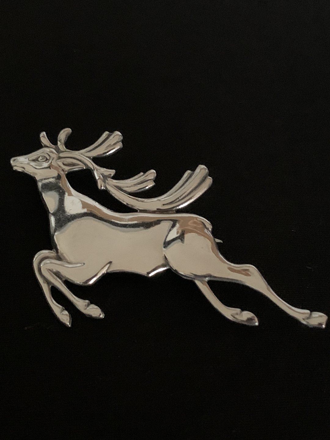 Silver brooch motif stag and beautiful details. Stamped 830s.